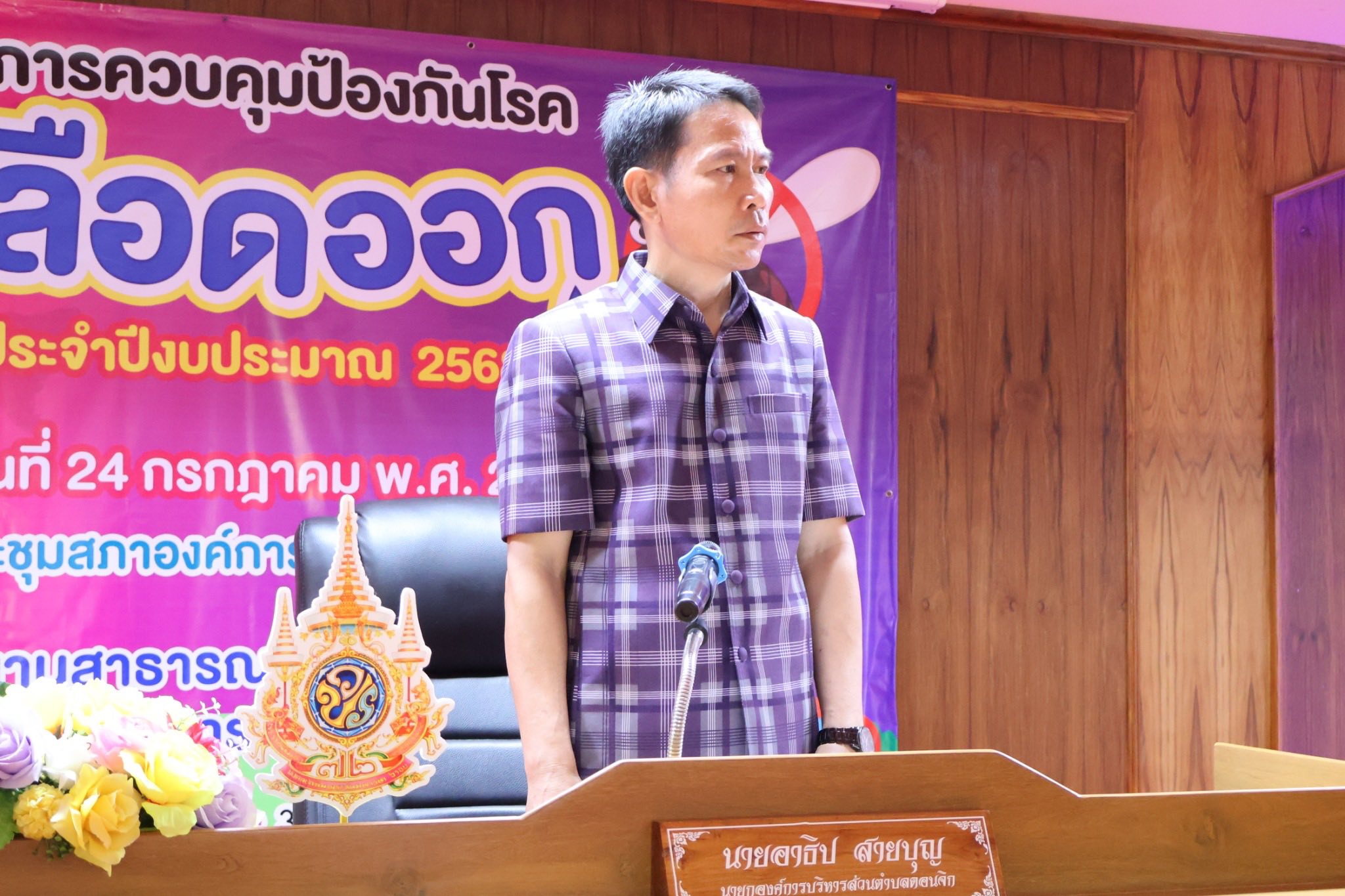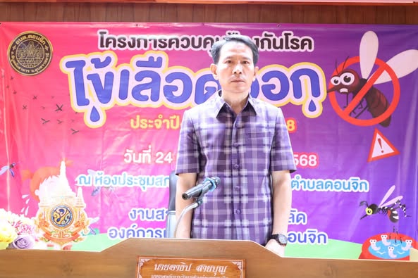 วันที่ 24 กรกฎาคม 2568 เวลา 09.30 น. นายอาธิป สายบุญ นายกองค์การบริหารส่วนตำบลดอนจิก ประธานพิธีเปิดโครงการควบคุมป้องกันโรคไข้เลือดออก ปีงบประมาณ 2568 โดยมีนายณัฏฐกฤต กุยแก้ว ปลัดองค์การบริหารส่วนตำบลดอนจิก กล่าวรายงานวัตถุประสงค์ของโครงการดังนี้ 1.เพื่อลดอัตราป่วยด้วยโรคไข้เลือดออก 2.เพื่อกำจัดแหล่งเพาะพันธุ์ยุงลาย และกำจัดลูกน้ำยุงลายในชุมชน 3. เพื่อให้ประชาชนมีความรู้ ความเข้าใจ ในการควบคุมป้องกันโรคไข้เลือดออกที่ถูกวิธี และเหมาะสม 4.เพื่อให้ประชาชนเกิดพฤติกรรมในการทำลายแหล่งเพาะพันธุ์ยุงลายอย่างต่อเนื่องสม่ำเสมอ โดยมีกลุ่มเป้าหมายเข้าร่วม จำนวน 100 คน ณ ห้องประชุมสภาองค์การบริหารส่วนตำบลดอนจิก (หลังใหม่)